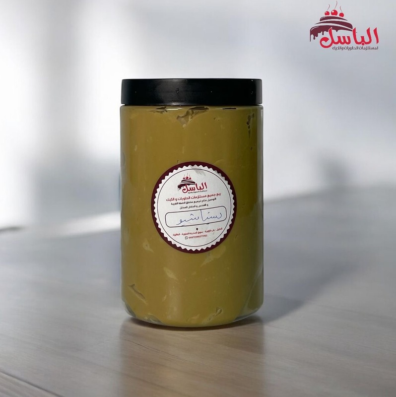 خليط كريمي وغني، تُصنع أساساً من الفستق الحلبي المطحون والمحمص، مع إضافة مُحليات مثل العسل أو الحليب المكثف، ومكونات لزيادة القوام مثل القشطة أو الزيت النباتي، وأحيانًا منكهات كالقرفة أو ماء الزهر للحصول على نكهة مميزة تستخدم لحشو الحلويات والمعجنات مثل الكيك، التارت، والماكرون، وتتراوح من قوام ناعم جداً إلى قوام مقرمش