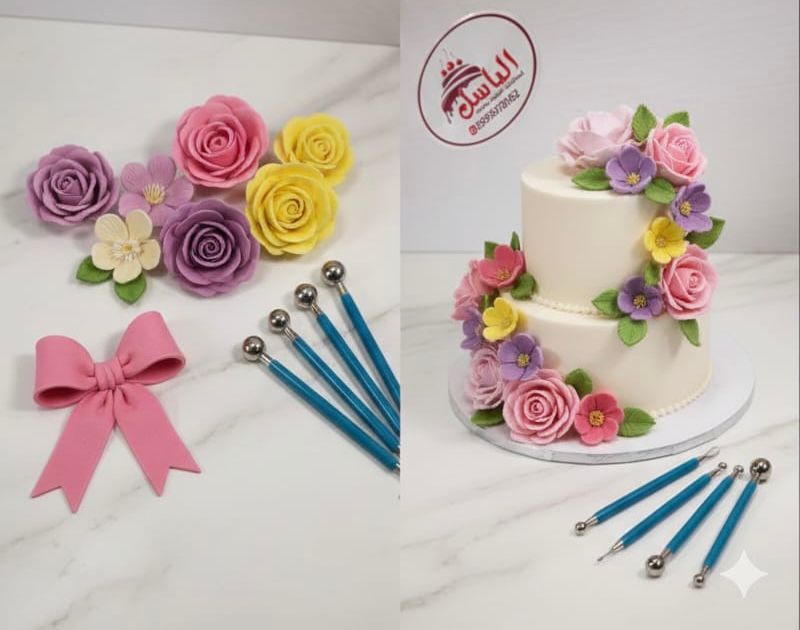 مجموعة متنوعة من الأدوات البلاستيكية والسيليكونية المصممة لتشكيل وتزيين الكيك